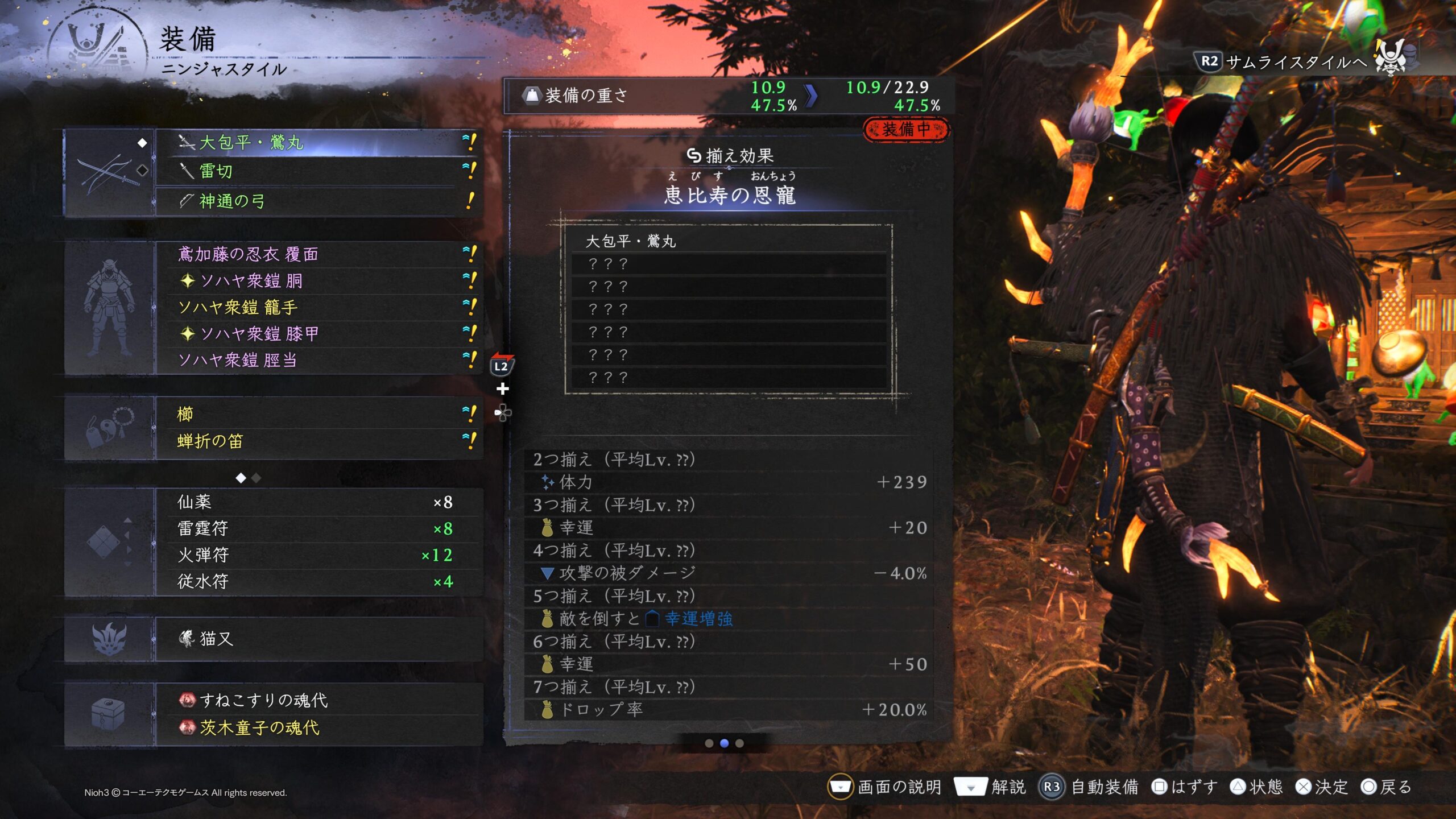 大黒天はどちらかと言うと忍術ビルド裏の侍用って感じ