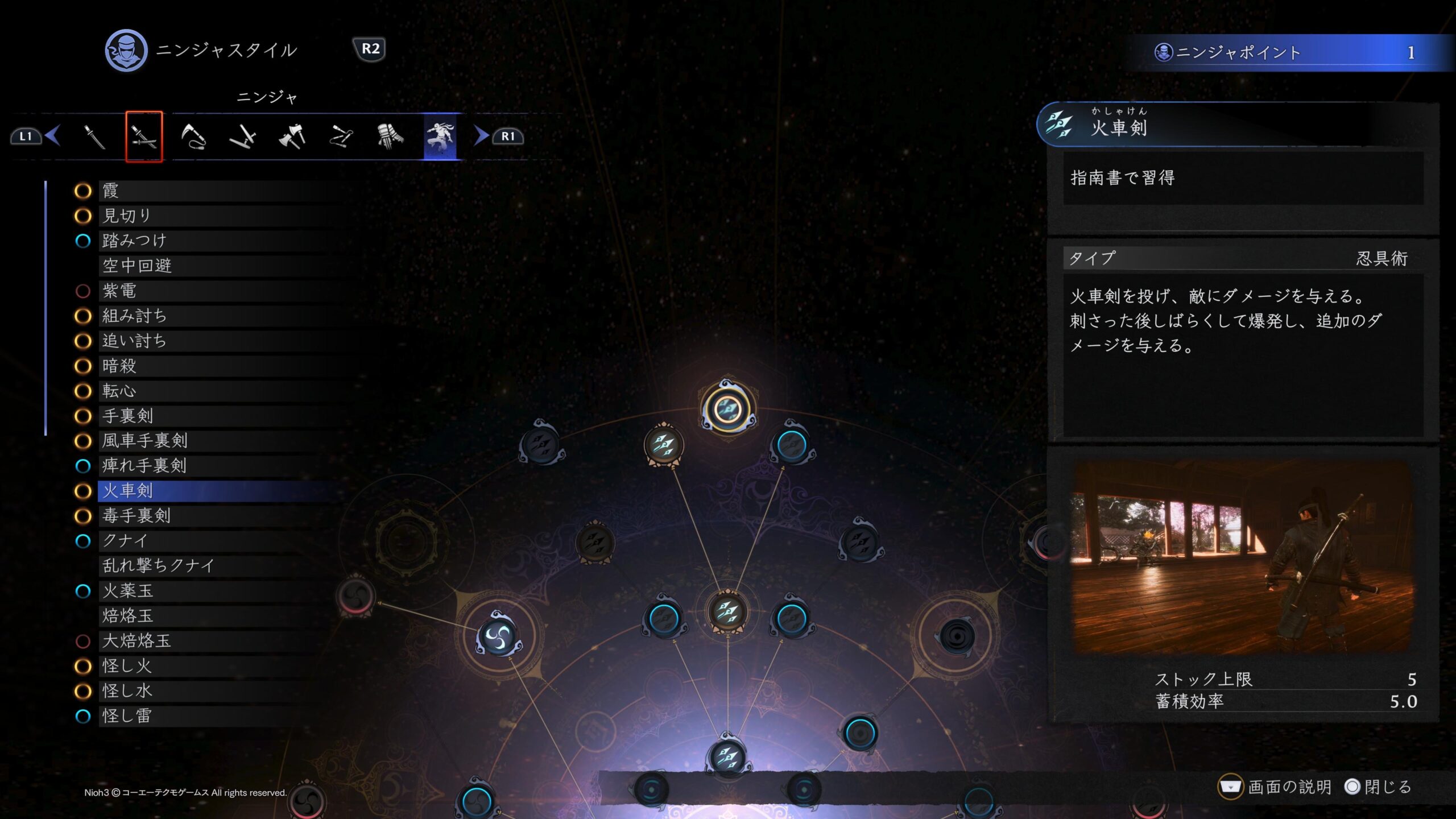 『仁王3』ニンジャ武技「火車剣」指南書の入手方法と手斧の評価。