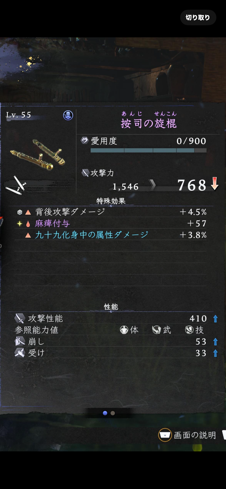 『仁王3』サムライ ステップ回避の性能と麻痺50以上の装備。