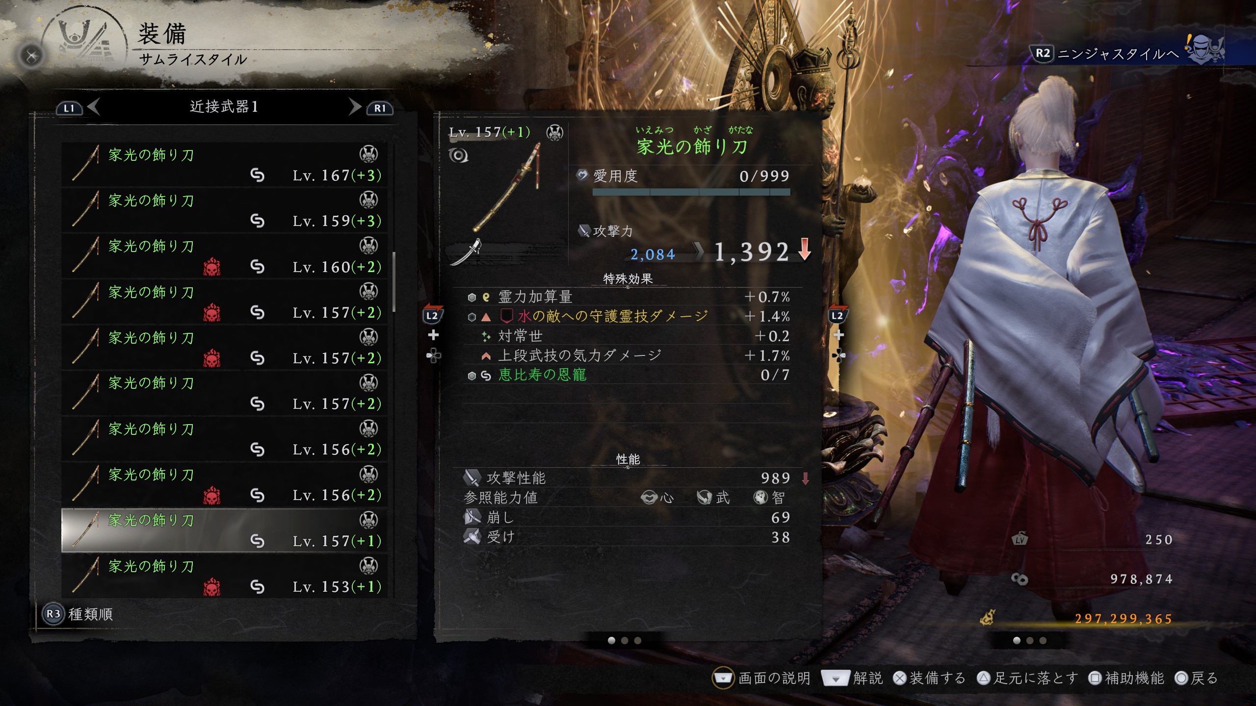 家光の飾り刀は現時点で地獄武器8本既に持ってるから、とりあえずこれから加護に設定して掘ってみるわ