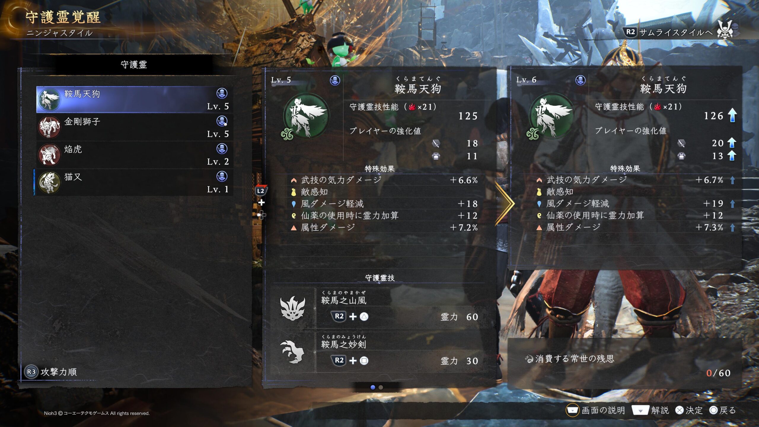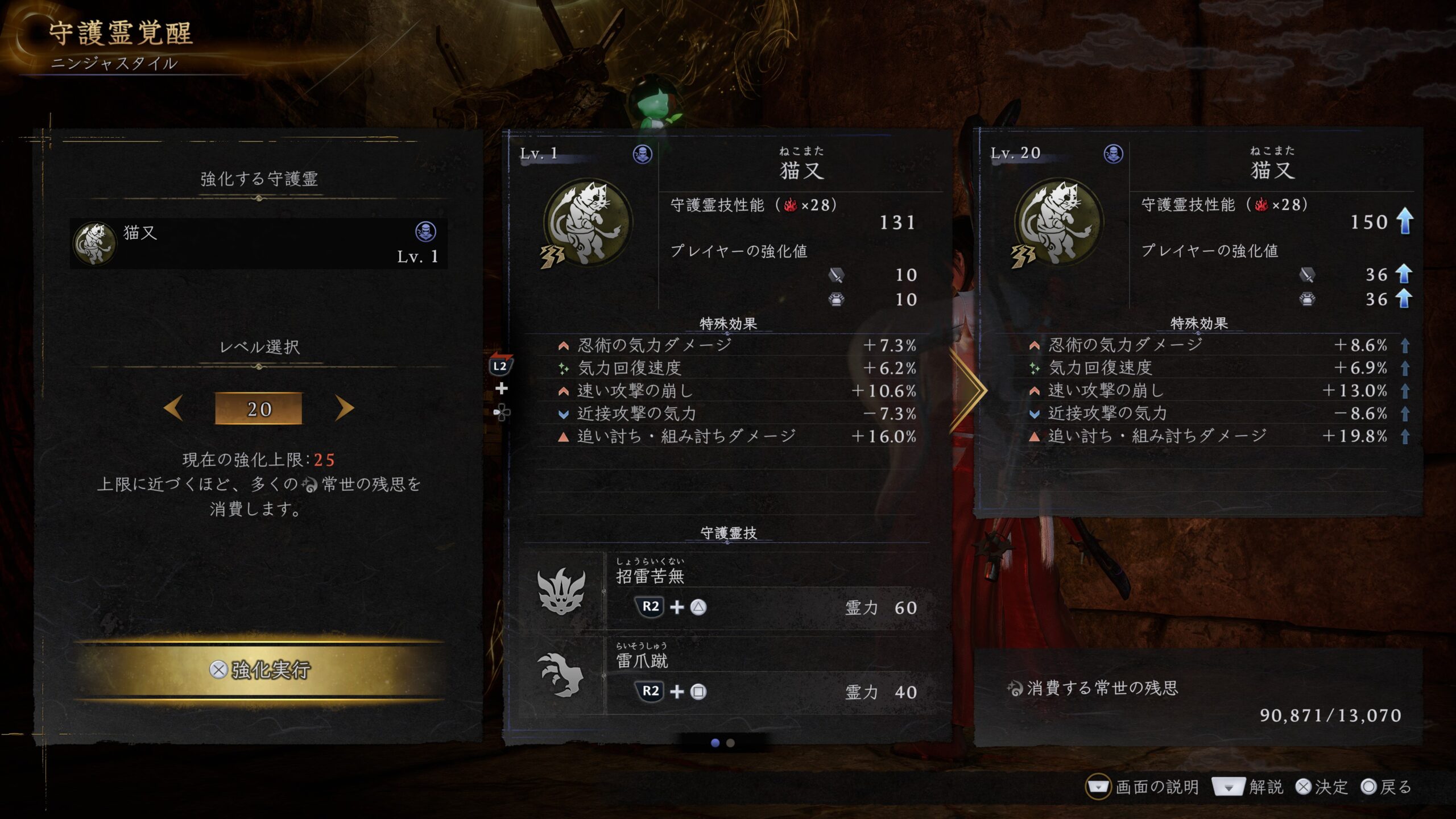守護霊覚醒から残思を使って守護霊のレベルを上げることができる