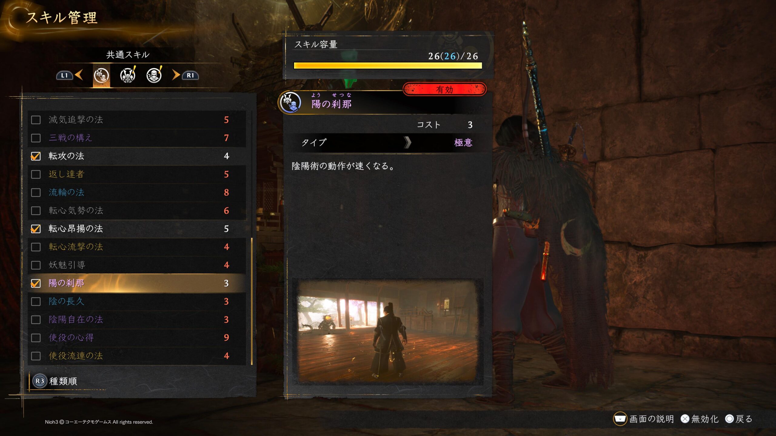 今作バフ系術の弱体化が著しくて戦闘の合間に陽の刹那でバフ掛け直し、みたいなムーブを殆どしなくなった事に気づいてからは自分も攻略中は陽の刹那抜いたわ