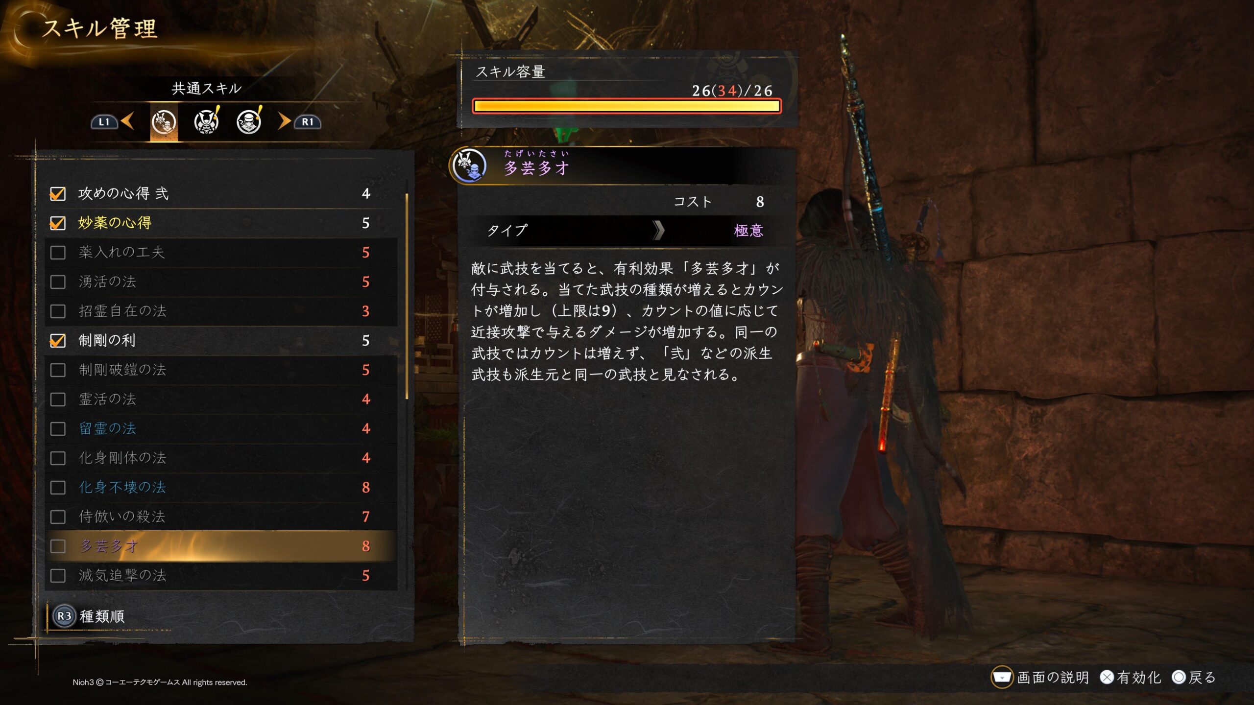 多芸は1ストック4%上昇忍者でも侍でも大半ストック5前後は余裕で溜めれるお手軽バフって考えたら陰陽術発動早くなるだけ出た芸より総合的に近接火力高くできるのかってとこはある