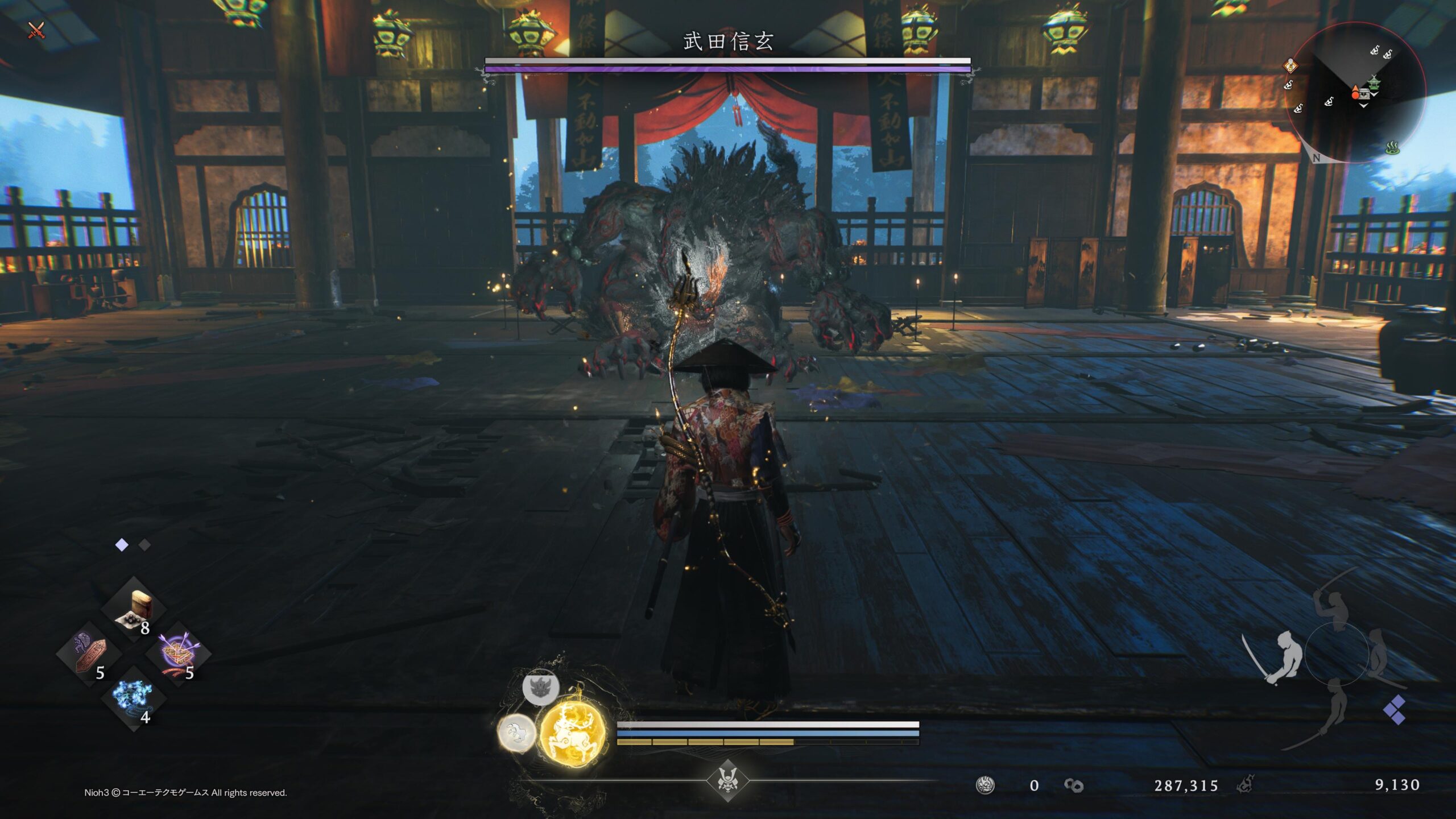 信玄も温泉入って養生札貼って斧でぐるぐるしてたら倒せたわ