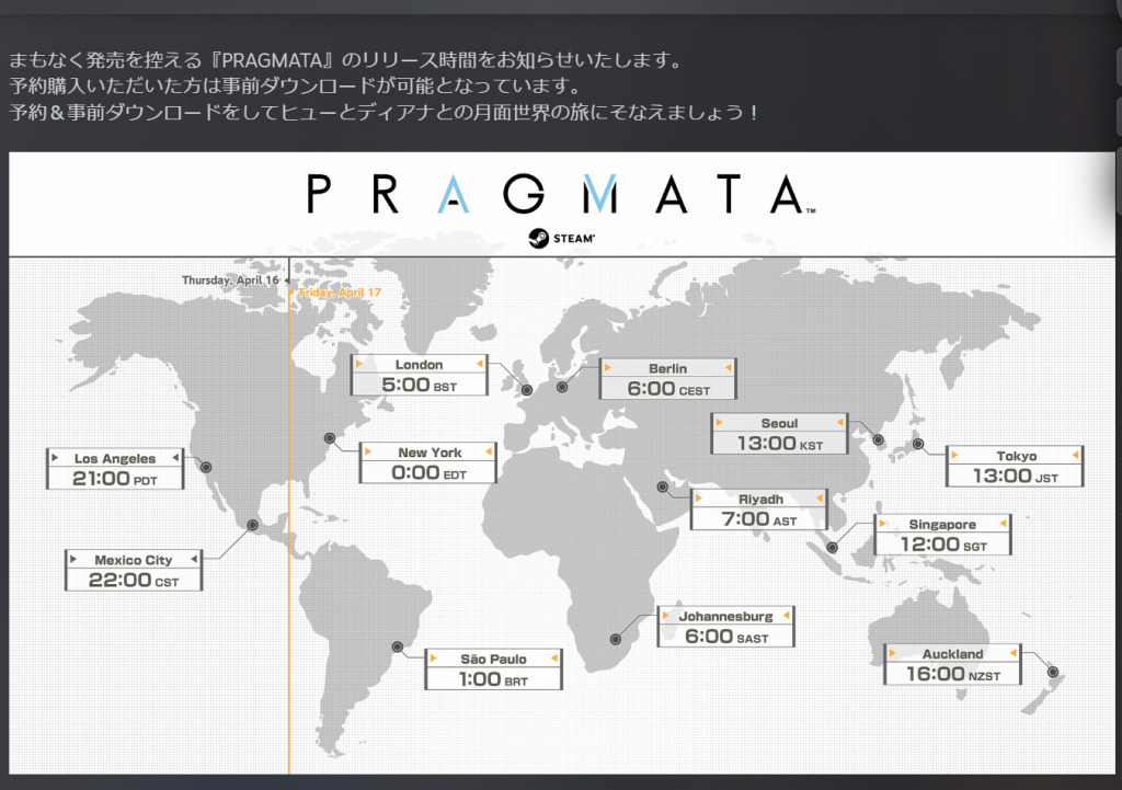 【『プラグマタ』Steam版リリース時間についてのお知らせ】