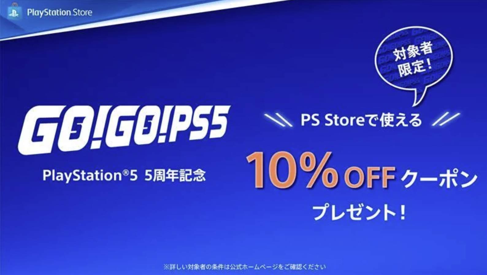 「PS5®発売5周年記念キャンペーン『GO!GO!PS5!』」開催!累計55時間以上プレイでPS Storeで使える10%OFFクーポンを配布。
