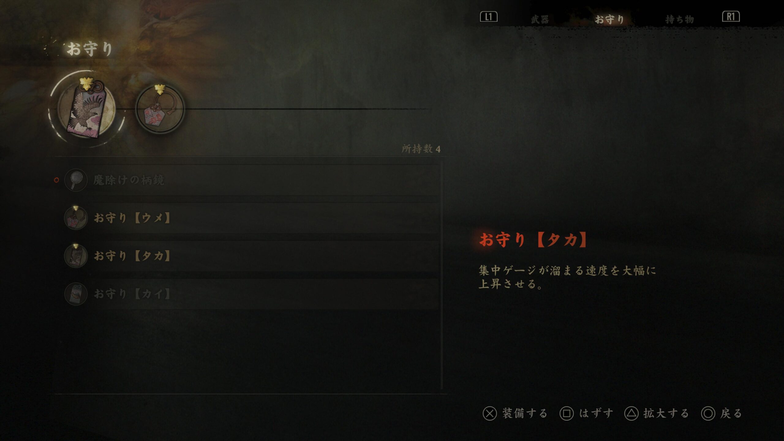 せっかく敵視認縮小のお守りあるんやからサイレントキル欲しかったわ