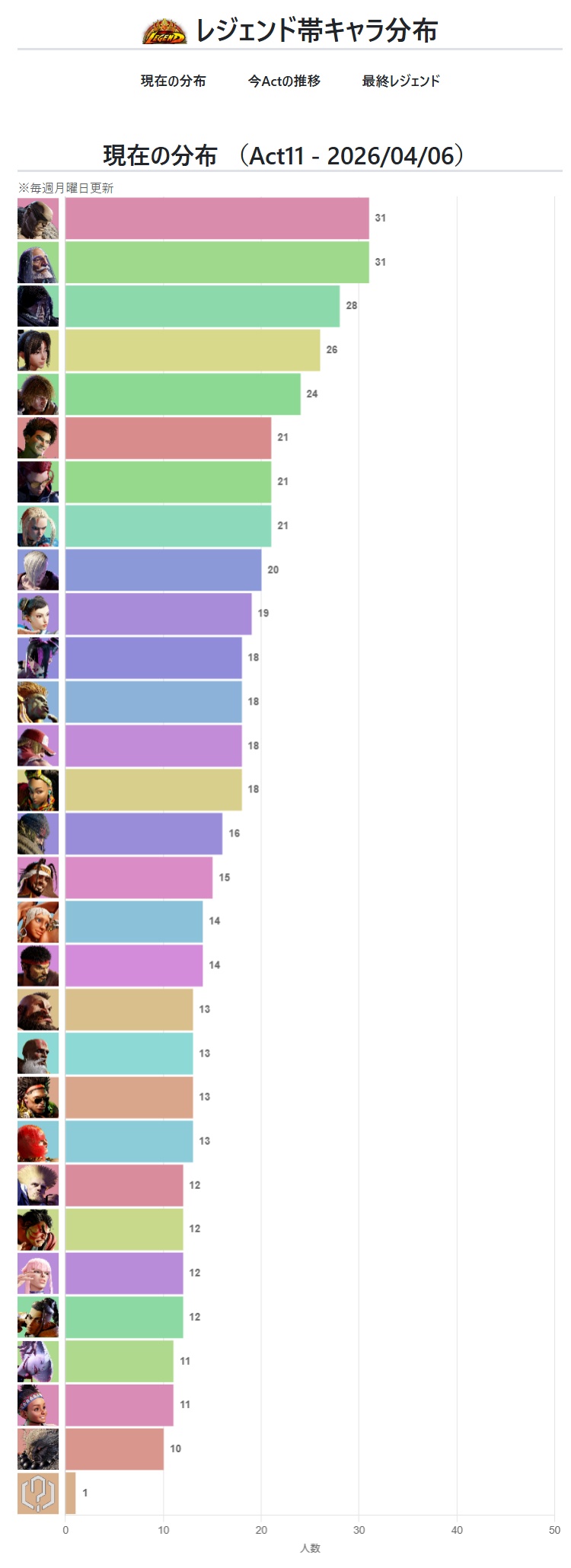 『ストリートファイター6』レジェンド帯キャラ分布。豪鬼使いは皆サガットへ。