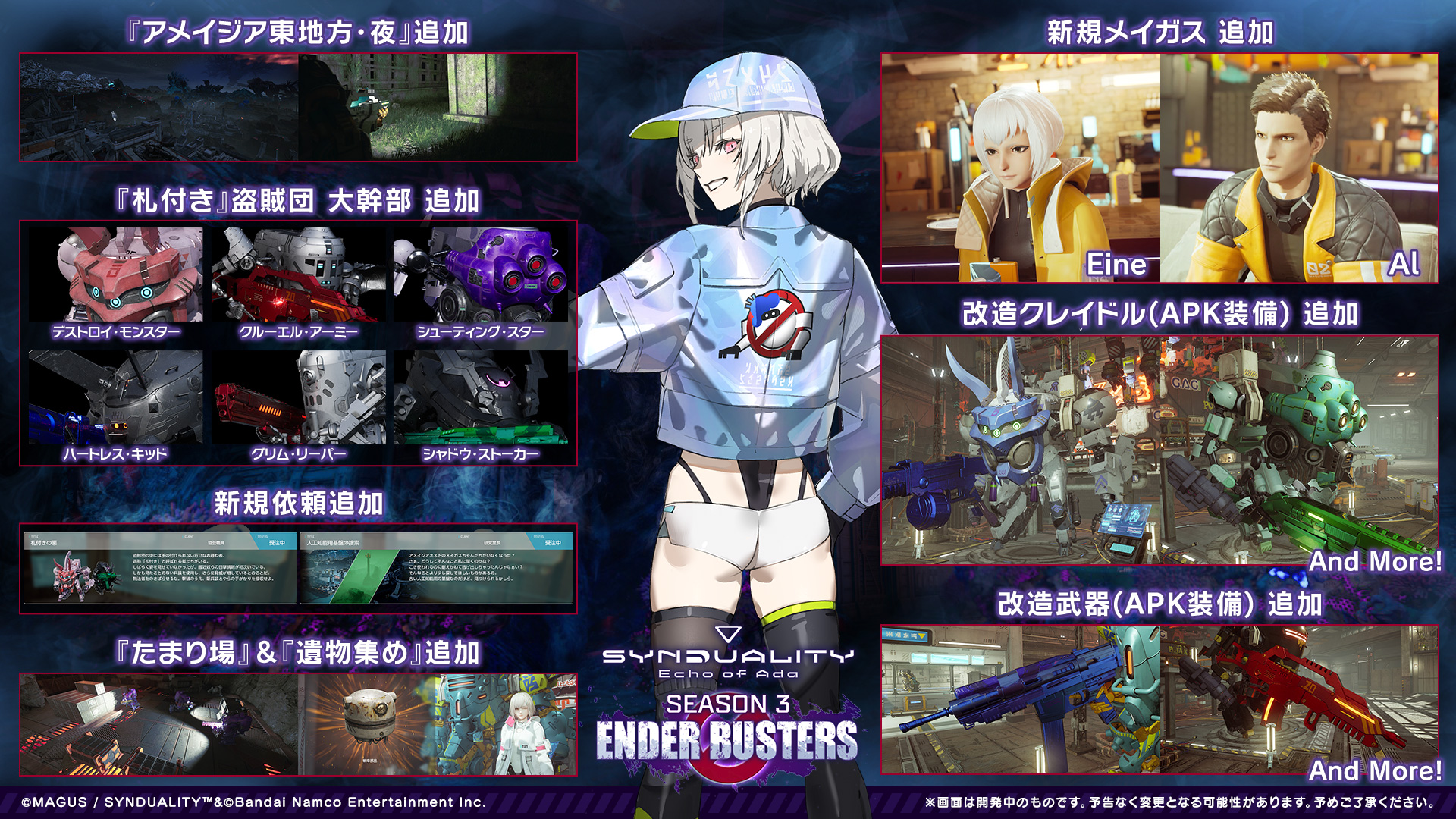 バンダイナムコが手がけるオンラインアクションゲーム『SYNDUALITY Echo of Ada』の新シーズンとなるSEASON 3「ENDER BUSTERS」の配信日が、公式X(旧Twitter)にて正式発表されました。